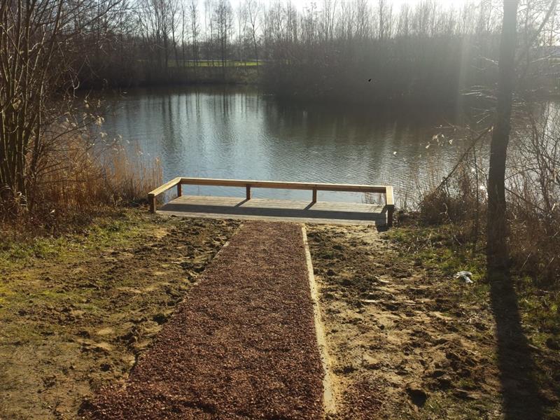 Foto's van de bouw van de steiger en het eindresultaat aan de Bewwerskamp.